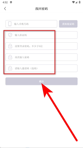 5、輸入驗(yàn)證碼、設(shè)置新密碼等信息后,點(diǎn)擊確認(rèn),完成密碼找回操作。