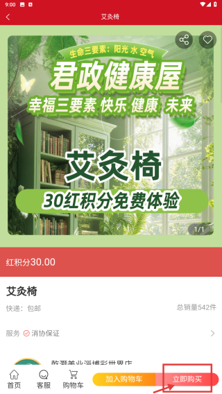 4、在商品詳情頁(yè),點(diǎn)擊立即購(gòu)買按鈕,完成艾灸椅的購(gòu)買操作。