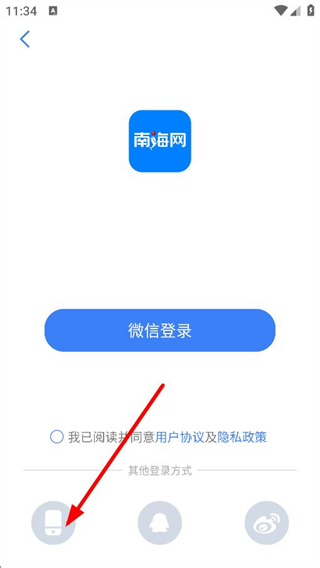3、在登錄方式選擇頁面,點(diǎn)擊手機(jī)號登錄圖標(biāo),進(jìn)入驗(yàn)證碼登錄頁面。