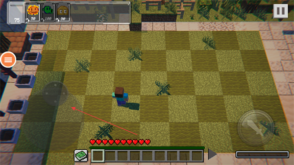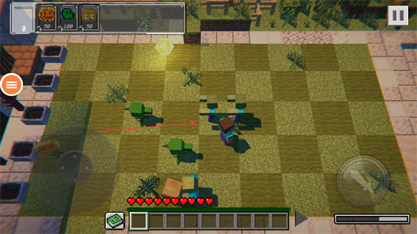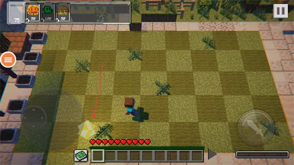 1、操控角色移動,收集黃色方塊資源,用于種植植物。