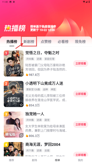 2、在榜單頁面,點擊新劇榜標簽,瀏覽新劇榜單內(nèi)容。
