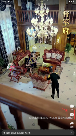 4、在短劇播放頁面,點擊評論按鈕,即可參與該短劇的評論互動。