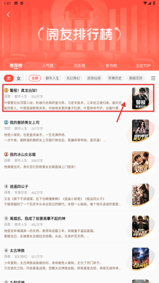 3、在完本小說榜單里,找到警報(bào)!真龍出獄小說條目,點(diǎn)擊進(jìn)入小說詳情頁。