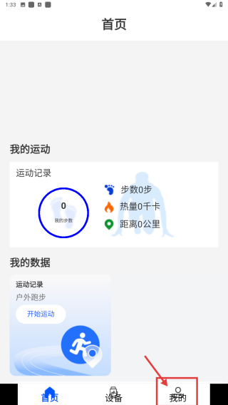 1、打開運動健康應(yīng)用,點擊底部我的選項,進(jìn)入個人中心頁面。