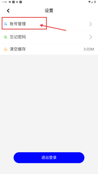 3、在設(shè)置頁面,點擊賬號管理選項,進(jìn)入賬號管理頁面。