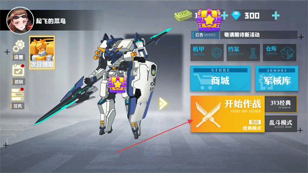 1、進(jìn)入游戲系統(tǒng)界面,點(diǎn)擊開始作戰(zhàn),進(jìn)入戰(zhàn)斗模式。