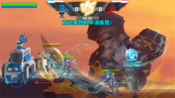 2、通過左下角輪盤來控制機(jī)甲的移動(dòng)方向更好的攻擊敵對(duì)目標(biāo)。
