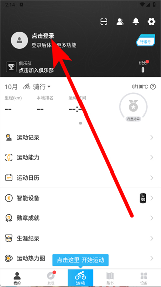 1、打開行者騎行,點(diǎn)擊點(diǎn)擊登錄選項(xiàng),進(jìn)入登錄頁(yè)面。
