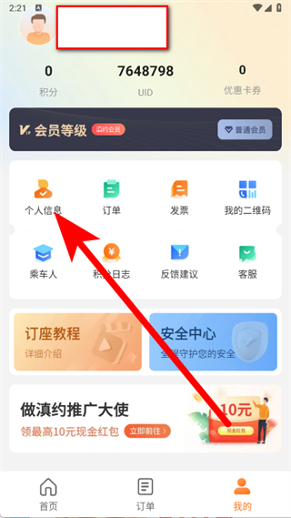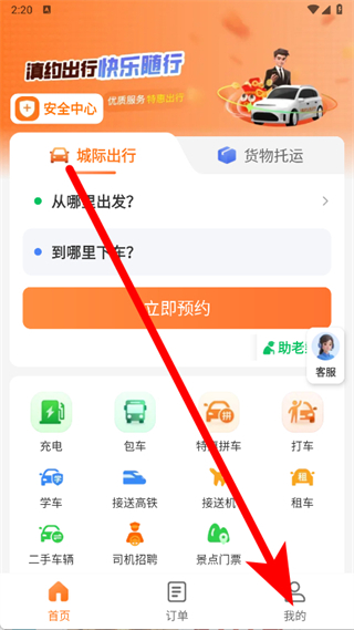 1、打開滇約出行,點(diǎn)擊首頁底部導(dǎo)航欄的我的,進(jìn)入個(gè)人中心頁面。