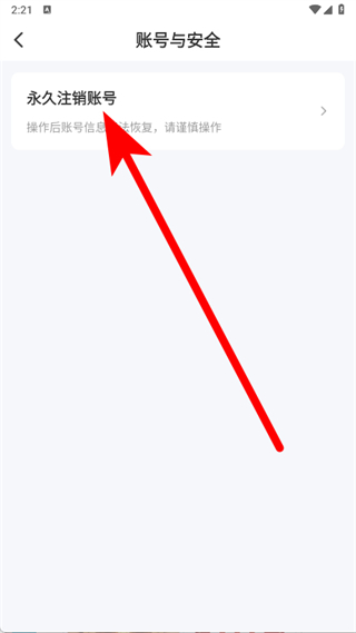 4、在賬戶安全頁面,點(diǎn)擊永久注銷賬號選項(xiàng),進(jìn)入注銷賬號說明頁面。