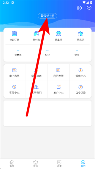 2、在個(gè)人中心頁(yè)面,點(diǎn)擊頂部的登錄注冊(cè)按鈕,進(jìn)入登錄流程。