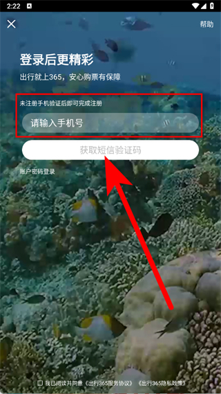 3、輸入手機(jī)號(hào)碼,點(diǎn)擊獲取短信驗(yàn)證碼按鈕以獲取驗(yàn)證信息。