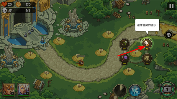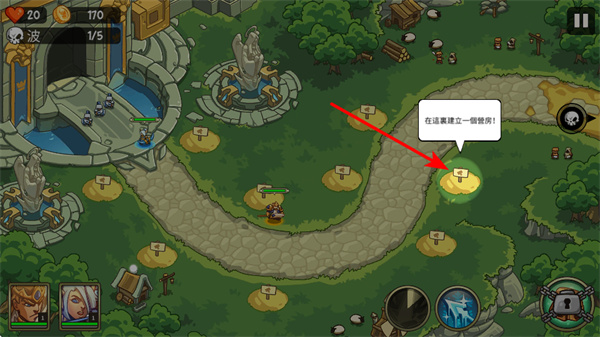 2、遇到建塔提示時,點擊指定區(qū)域的建塔點位,這是構(gòu)建防御體系的核心步驟,初期優(yōu)先選擇性價比高的箭塔,快速形成基礎防御。