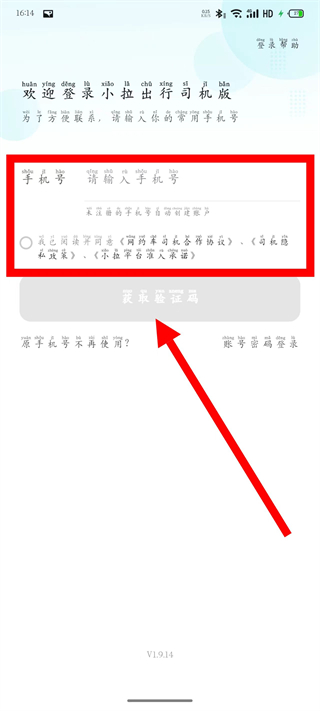 2、在登錄頁(yè)面,輸入常用手機(jī)號(hào),勾選同意相關(guān)用戶協(xié)議后,點(diǎn)擊獲取驗(yàn)證碼。