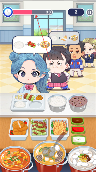 每個(gè)關(guān)卡設(shè)置時(shí)間限制,需快速響應(yīng)學(xué)生需求、準(zhǔn)確打飯,考驗(yàn)手速與反應(yīng)能力,提升游戲緊張感。