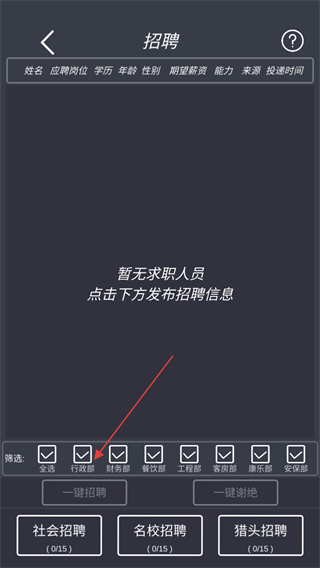 4、在招聘界面,選擇篩選條件,發(fā)布招聘信息,招募合適員工。