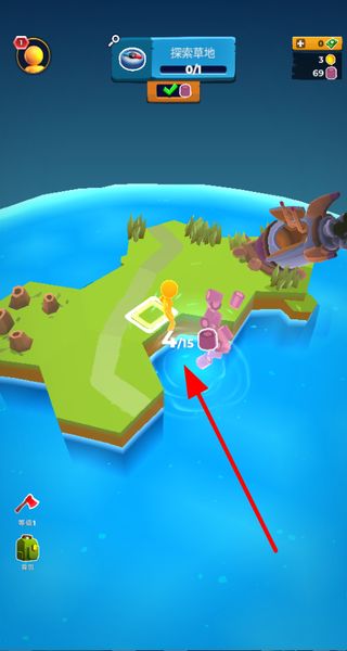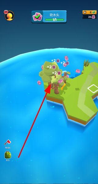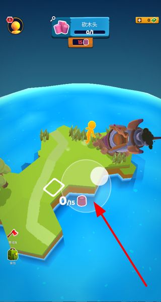 1、操控火柴人移動(dòng),前往島嶼上的資源點(diǎn),收集木頭等資源,完成砍木頭任務(wù),積累生存材料。