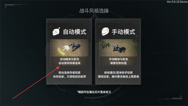 1、 選擇自動(dòng)模式,開啟自動(dòng)瞄準(zhǔn)與射擊的戰(zhàn)斗風(fēng)格。