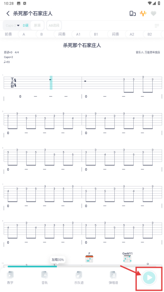 4、在曲譜詳情頁(yè),點(diǎn)擊播放按鈕,查看該曲譜的動(dòng)態(tài)演奏效果,輔助音樂學(xué)習(xí)。