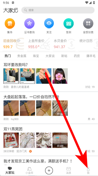 1、打開大家壇,點(diǎn)擊底部導(dǎo)航欄最右側(cè)的我,進(jìn)入個人中心頁面。