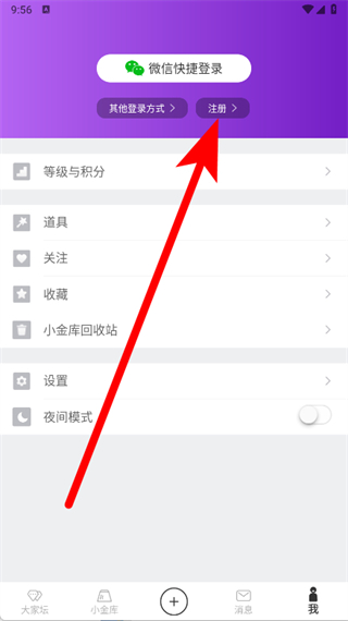 2、在個人中心頁面,點(diǎn)擊注冊選項,開啟賬號注冊流程。