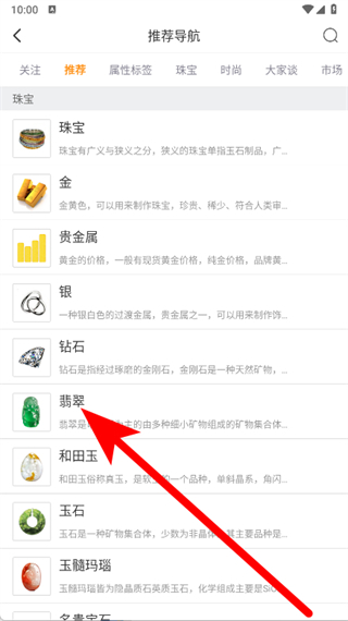 2、在推薦導(dǎo)航頁面珠寶分類下,點擊翡翠選項,進入翡翠板塊。