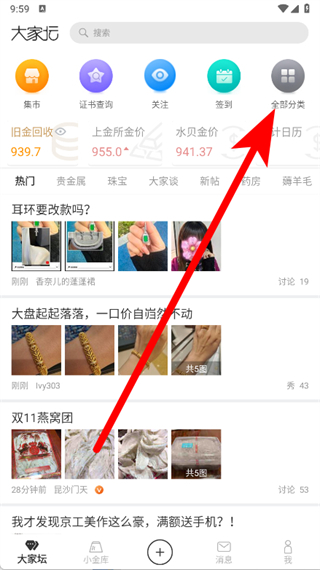 1、打開大家壇,點擊頁面右上角的全部分類,進入推薦導(dǎo)航頁面。