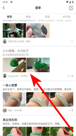 3、在翡翠板塊中,選擇感興趣的帖子,點擊進入帖子詳情頁。