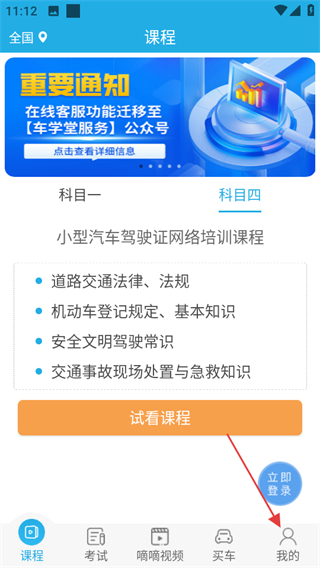 1、打開(kāi)車(chē)學(xué)堂,點(diǎn)擊頁(yè)面右下角我的,可進(jìn)入個(gè)人中心頁(yè)面。