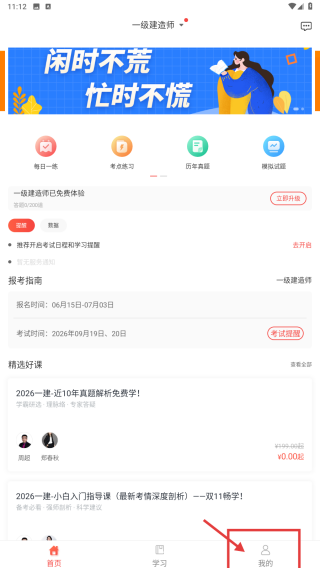 1、打開(kāi)工程類(lèi)考試學(xué)習(xí)應(yīng)用,點(diǎn)擊底部我的選項(xiàng),進(jìn)入個(gè)人中心頁(yè)面。