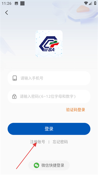 3、在登錄注冊(cè)頁面,點(diǎn)擊注冊(cè)賬號(hào)可進(jìn)入注冊(cè)操作頁面。