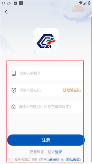 4、在注冊(cè)頁面,輸入信息,同意協(xié)議后點(diǎn)擊注冊(cè)可完成賬號(hào)注冊(cè)。