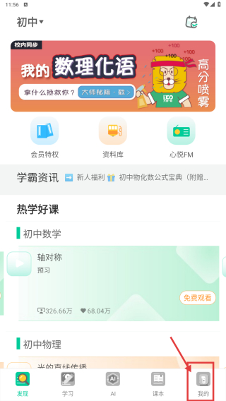 1、打開學(xué)科學(xué)習(xí)應(yīng)用,點(diǎn)擊底部我的選項(xiàng),進(jìn)入個(gè)人中心頁面。