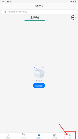 1、打開監(jiān)控類應(yīng)用,點(diǎn)擊底部我的選項(xiàng),進(jìn)入個(gè)人中心頁面。