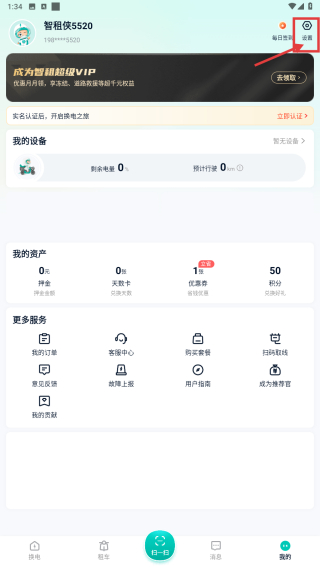 2、在個(gè)人中心頁面,點(diǎn)擊右上角設(shè)置按鈕,進(jìn)入設(shè)置功能列表。
