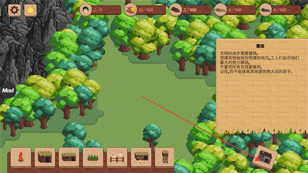 1、了解建造功能,通過建造建筑推動(dòng)文明進(jìn)步,工人會(huì)處理建造物附近資源。