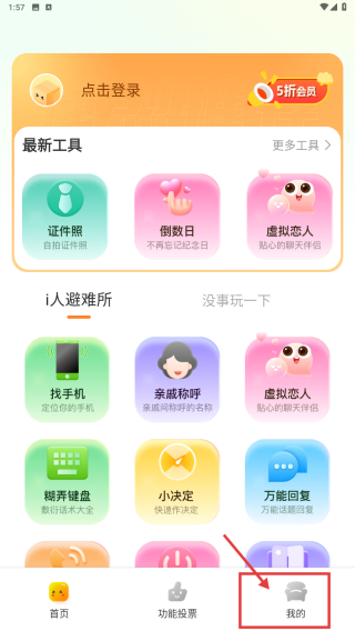 1、打開工具類應(yīng)用,點(diǎn)擊底部我的選項(xiàng),進(jìn)入個(gè)人中心頁面。