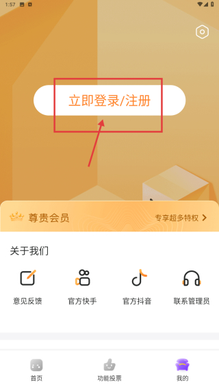 2、在個(gè)人中心頁面,點(diǎn)擊立即登錄/注冊(cè)選項(xiàng),進(jìn)入登錄方式選擇界面。