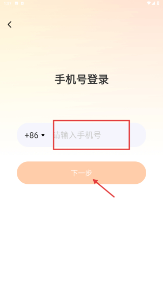 4、在手機(jī)號(hào)登錄頁面,輸入手機(jī)號(hào)后點(diǎn)擊下一步按鈕,完成登錄流程。