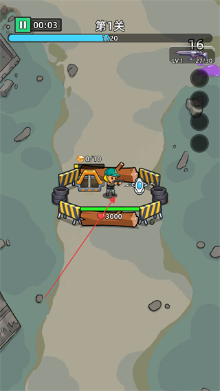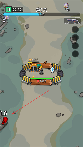 1、在第1關(guān)守護(hù)建筑,建筑有3000血量,需抵御敵人進(jìn)攻。