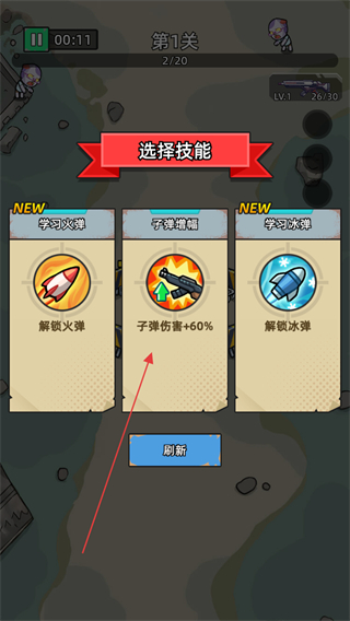 3、選擇技能,如子彈增幅子彈傷害+60%,提升攻擊能力。