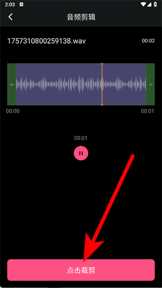 3、在音頻剪輯界面,點(diǎn)擊裁剪按鈕,對(duì)音頻進(jìn)行裁剪操作。
