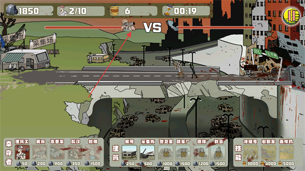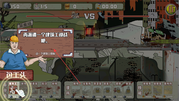 3、持續(xù)派遣建筑工,推進(jìn)戰(zhàn)線,消滅更多僵尸。