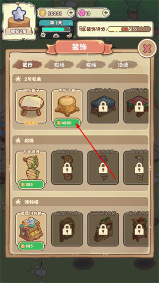 2、進(jìn)入裝飾界面,花費(fèi)金幣解鎖新的餐桌、招牌、儲(chǔ)物柜等裝飾,提升餐廳的裝飾評(píng)分,吸引更多顧客。
