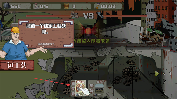 1、點(diǎn)擊派遣建筑工,部署建筑工參與戰(zhàn)斗。