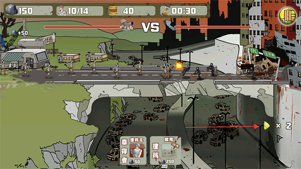 3、持續(xù)派遣建筑工,推進(jìn)戰(zhàn)線,消滅更多敵人,積累資源升級建筑或兵種。