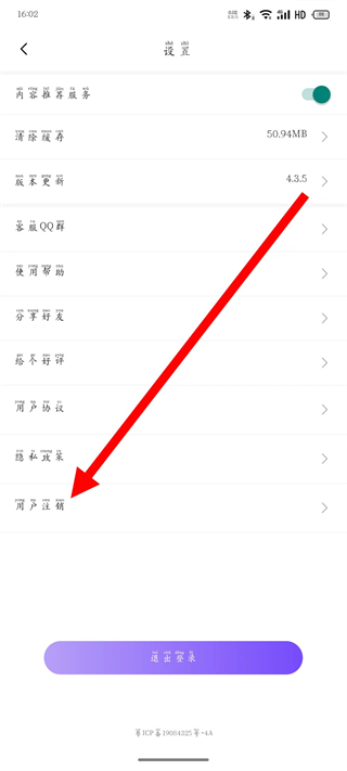 3、在設(shè)置頁面,點擊用戶注銷選項,進(jìn)入賬號注銷流程頁面。