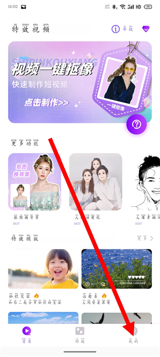1、打開特效視頻,點擊底部導(dǎo)航欄我的,進(jìn)入個人中心頁面。