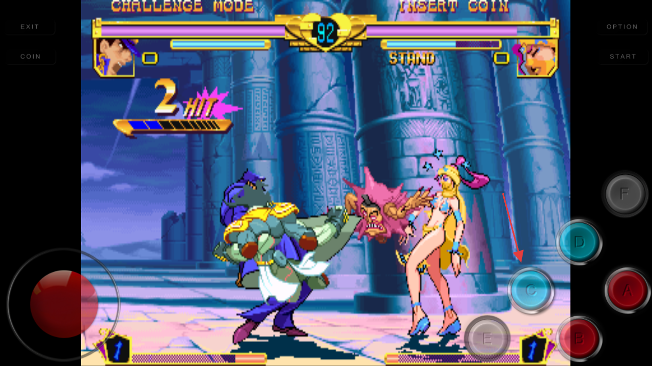 2、使用搖桿控制角色接近對手后,點擊藍(lán)色C鍵釋放技能攻擊。