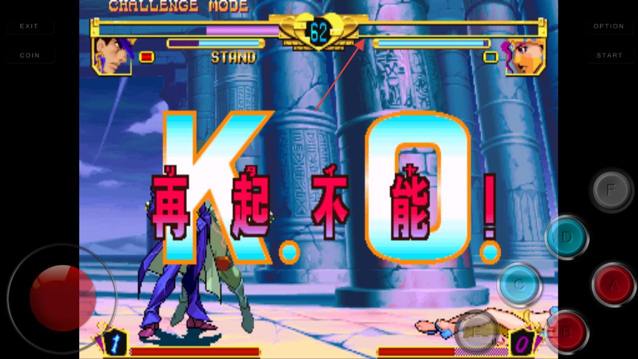 4、注意觀察上方的角色血條,當(dāng)對手的血條清空就算KO對手獲得勝利。